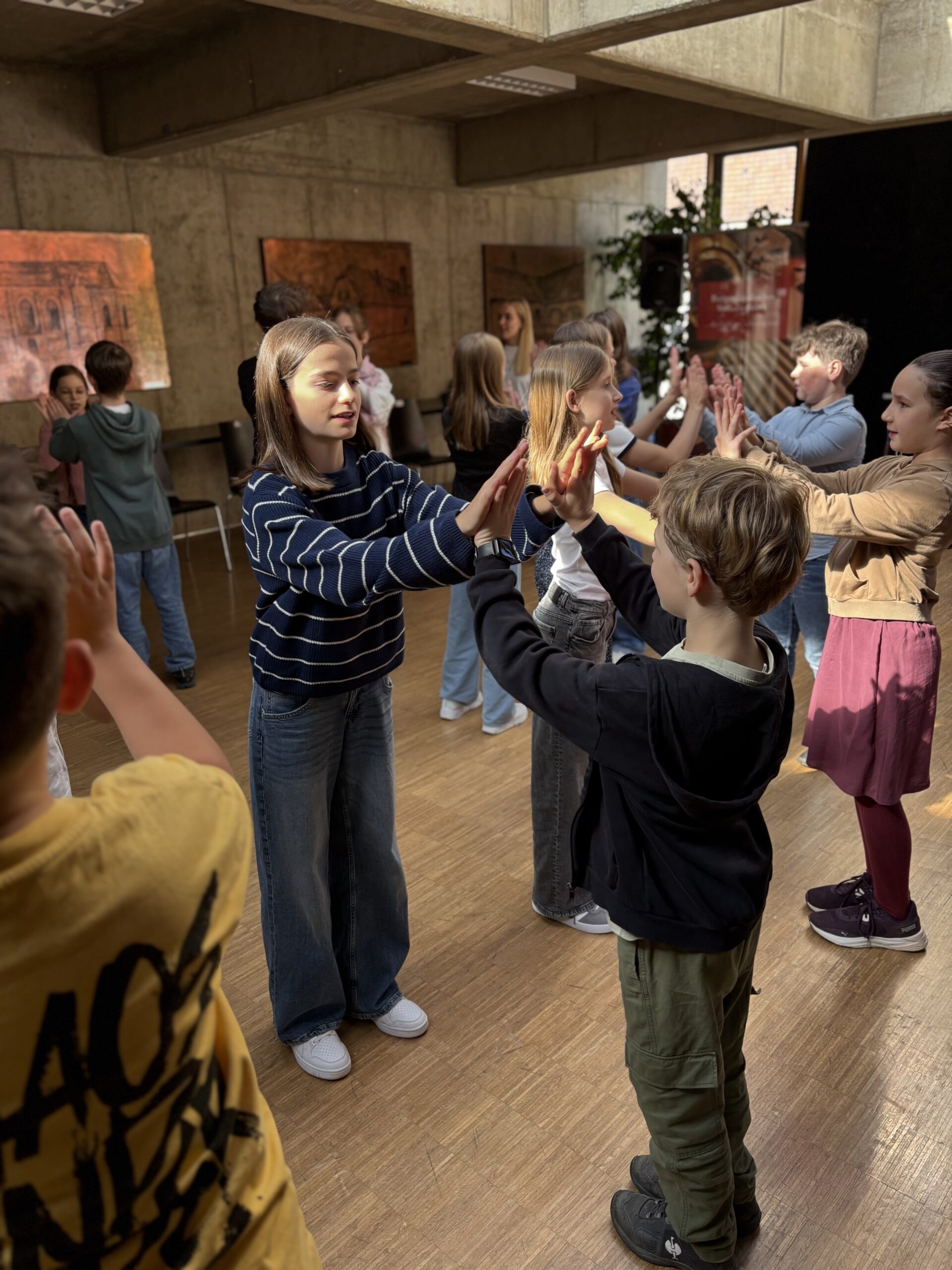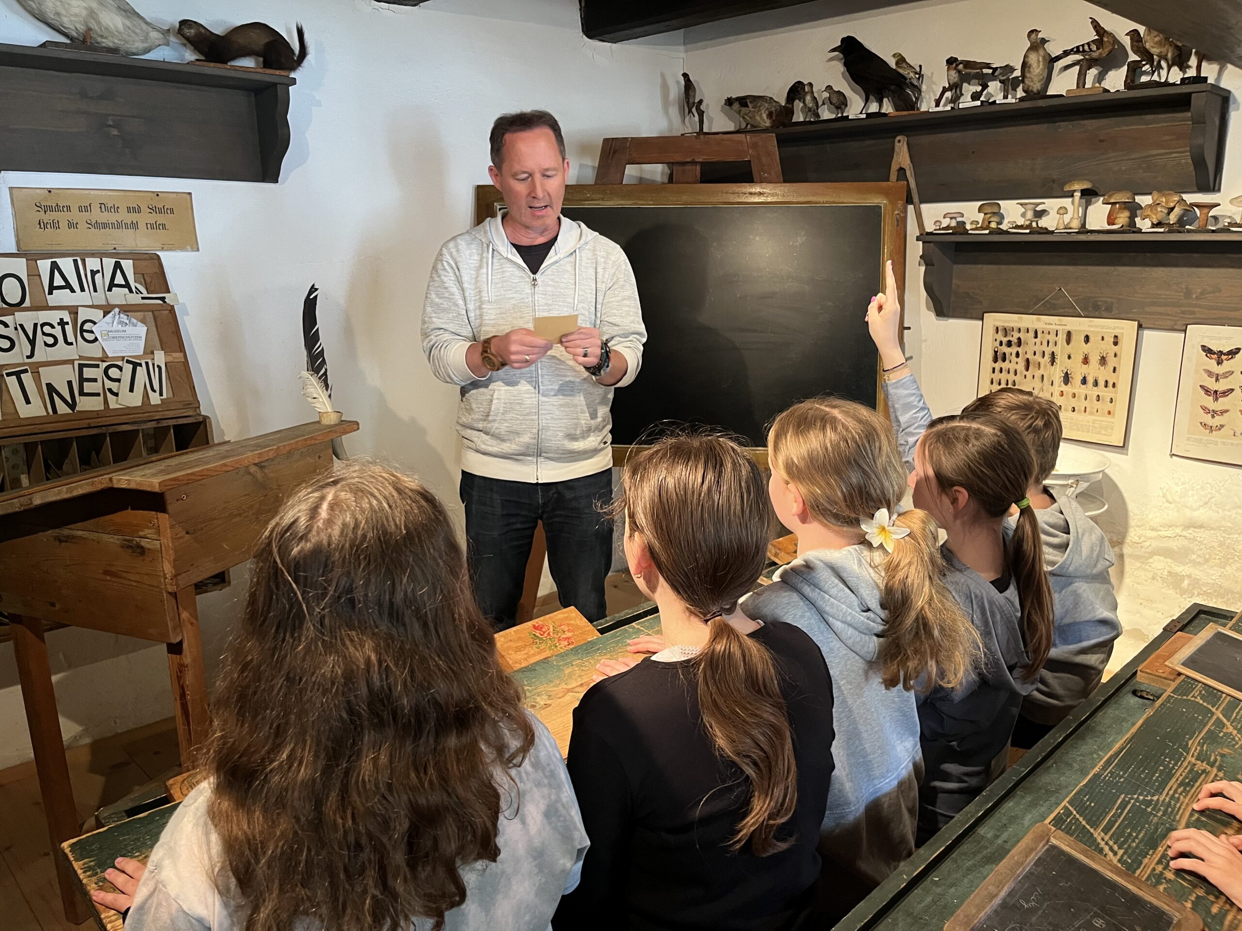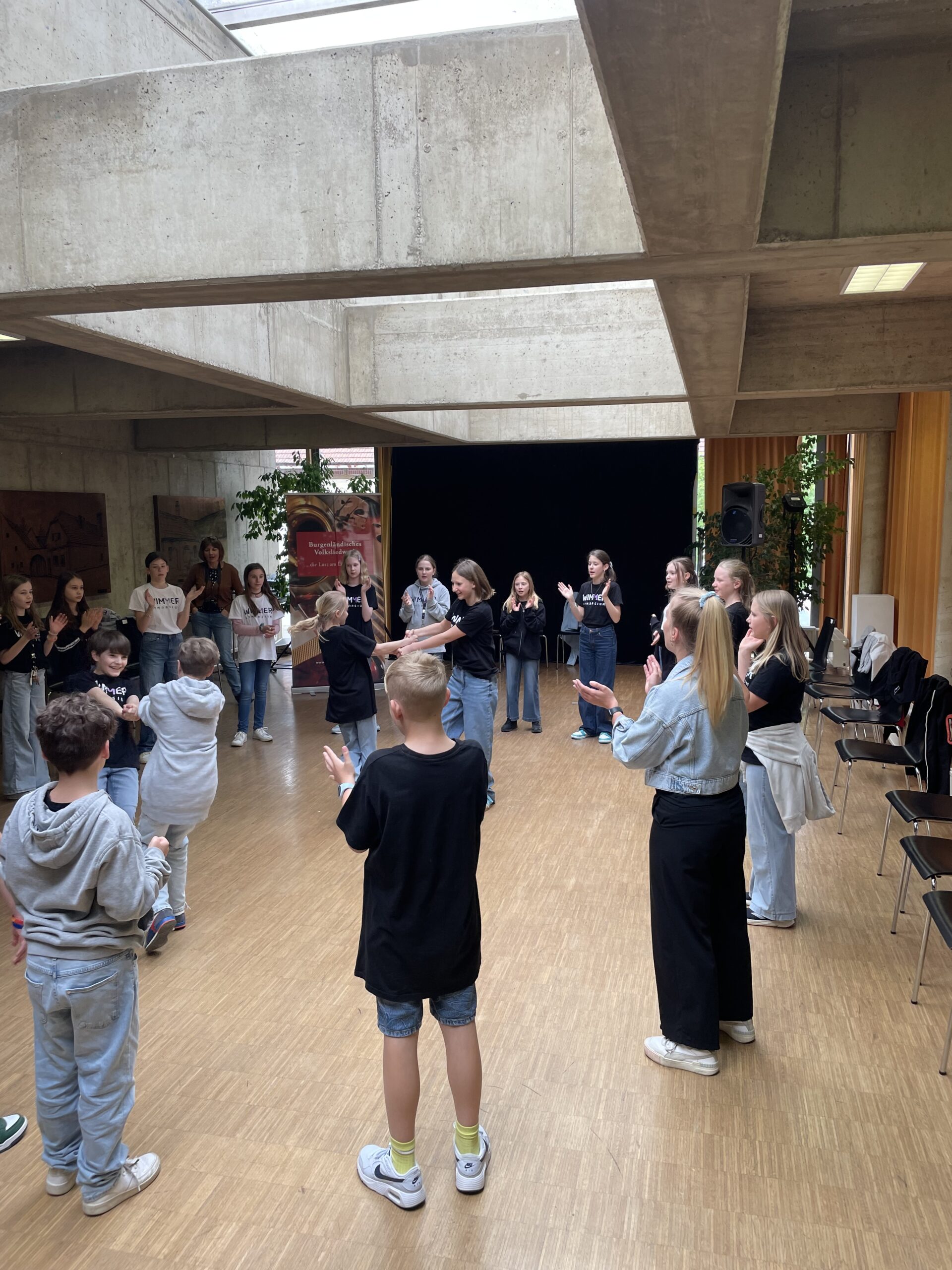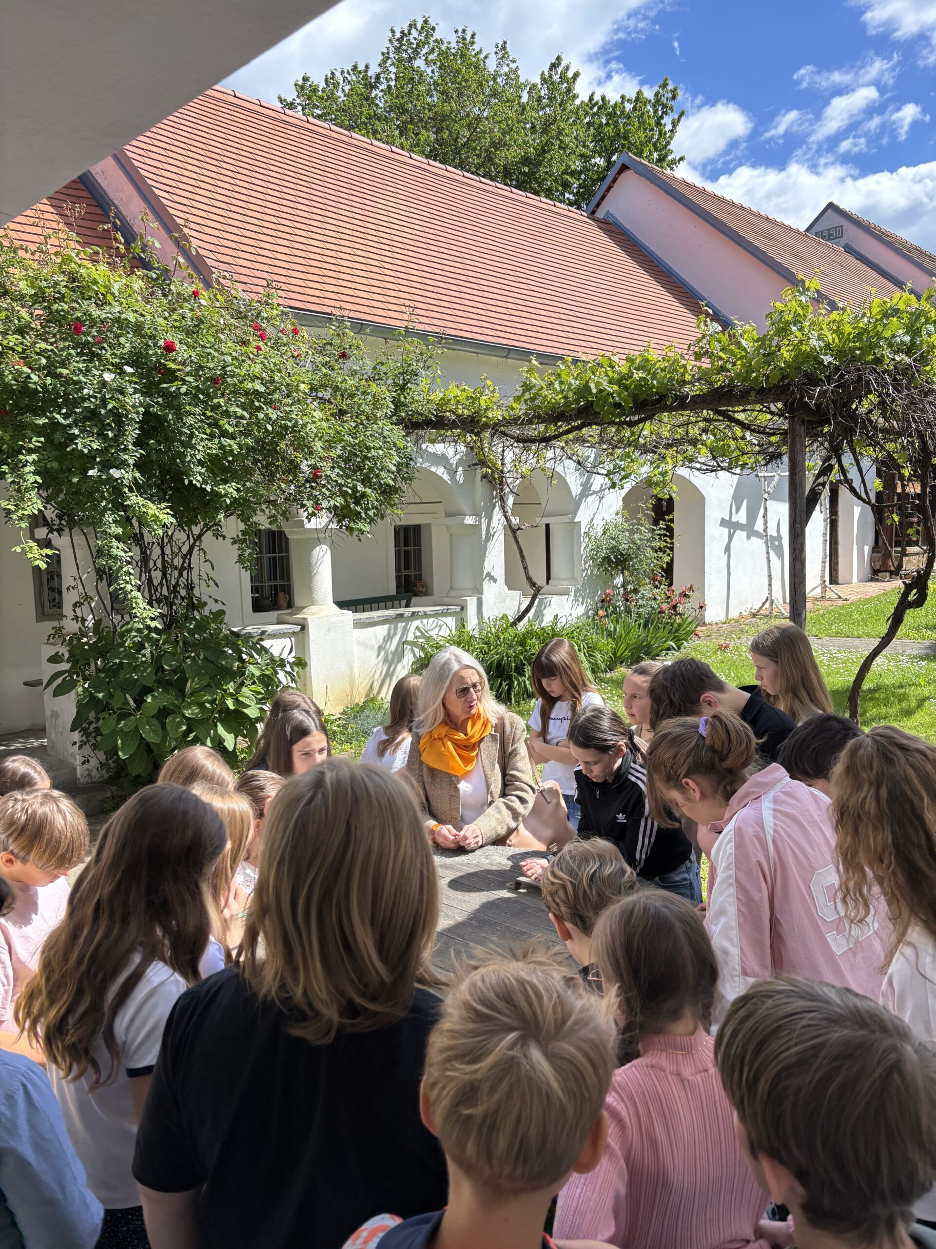 Im Mai 2025 hieß es wieder: Alte Zöpfe für junge Köpfe! Das bewährte Schulprojekt wurde erfolgreich fortgeführt, indem uns an insgesamt vier Vormittagen alle vier 1. Klassen des Wimmer Gymnasiums Oberschützen besuchten. Unter Zusammenarbeit der drei im Haus der Volkskultur beheimateten Vereine – Museum, Hianzenverein und Burgenländisches Volksliedwerk – konnte den Schüler:innen die burgenländische Volkskultur spielerisch nähergebracht werden. Das Haus der Volkskultur eignet sich ideal als Schauplatz für Projekte wie dieses, da es als „Ort der lebendigen Begegnung mit der Vergangenheit“ die Möglichkeit bietet, kulturelle Identitäten zu schaffen und Brücken zur Eltern- und Vorelterngeneration zu schlagen. Am Programm stand eine Führung durch das Museum Oberschützen, ein Workshop in Hianzisch zum Thema „Mundart ist cool“ und das Erarbeiten von burgenländischen Liedern und Singtänzen. Die strahlenden Gesichter der Schüler:innen bestätigen, dass das vielseitige Programm überzeugt hat. Wir blicken bereits mit Vorfreude auf das nächste Jahr!