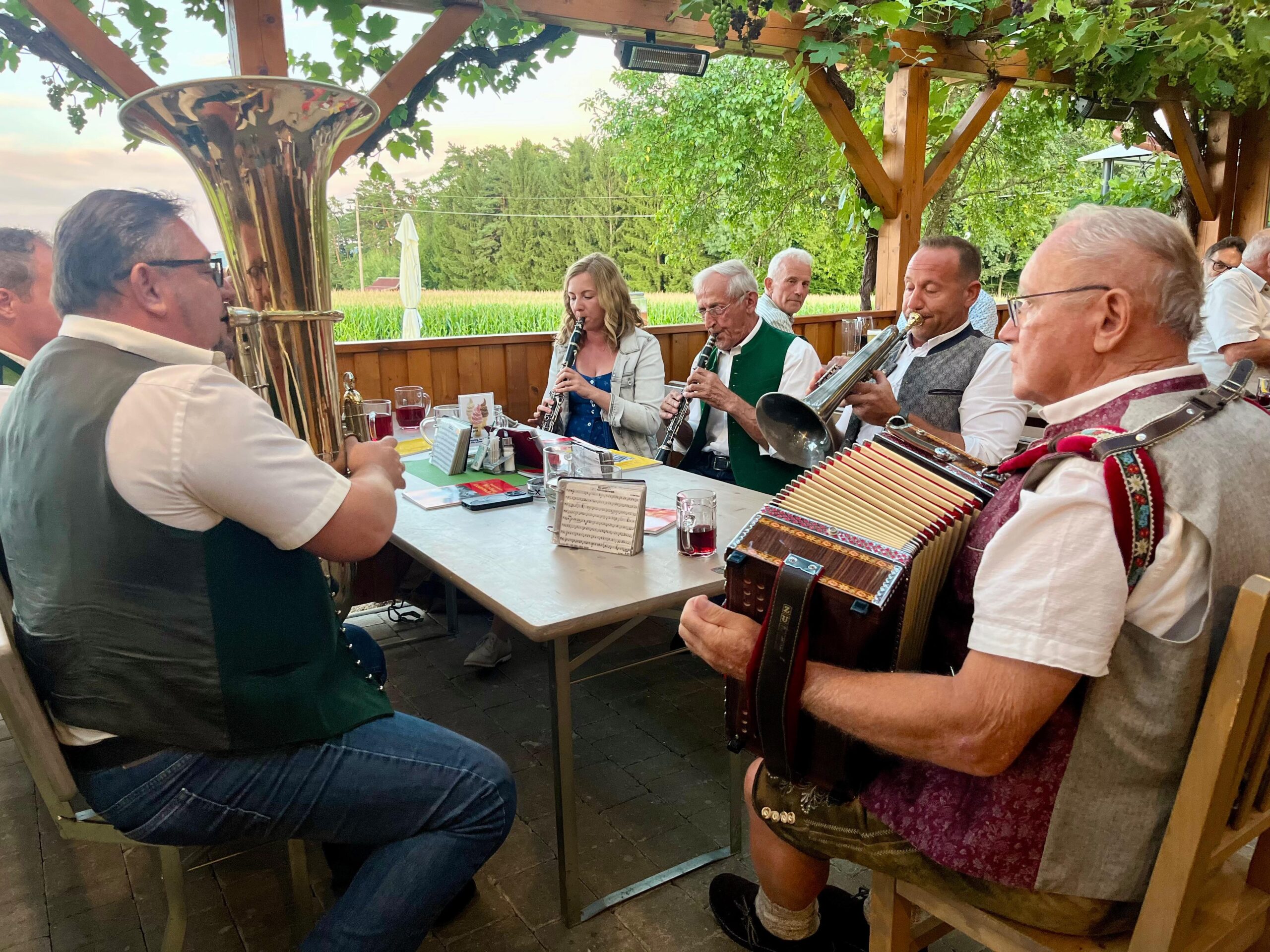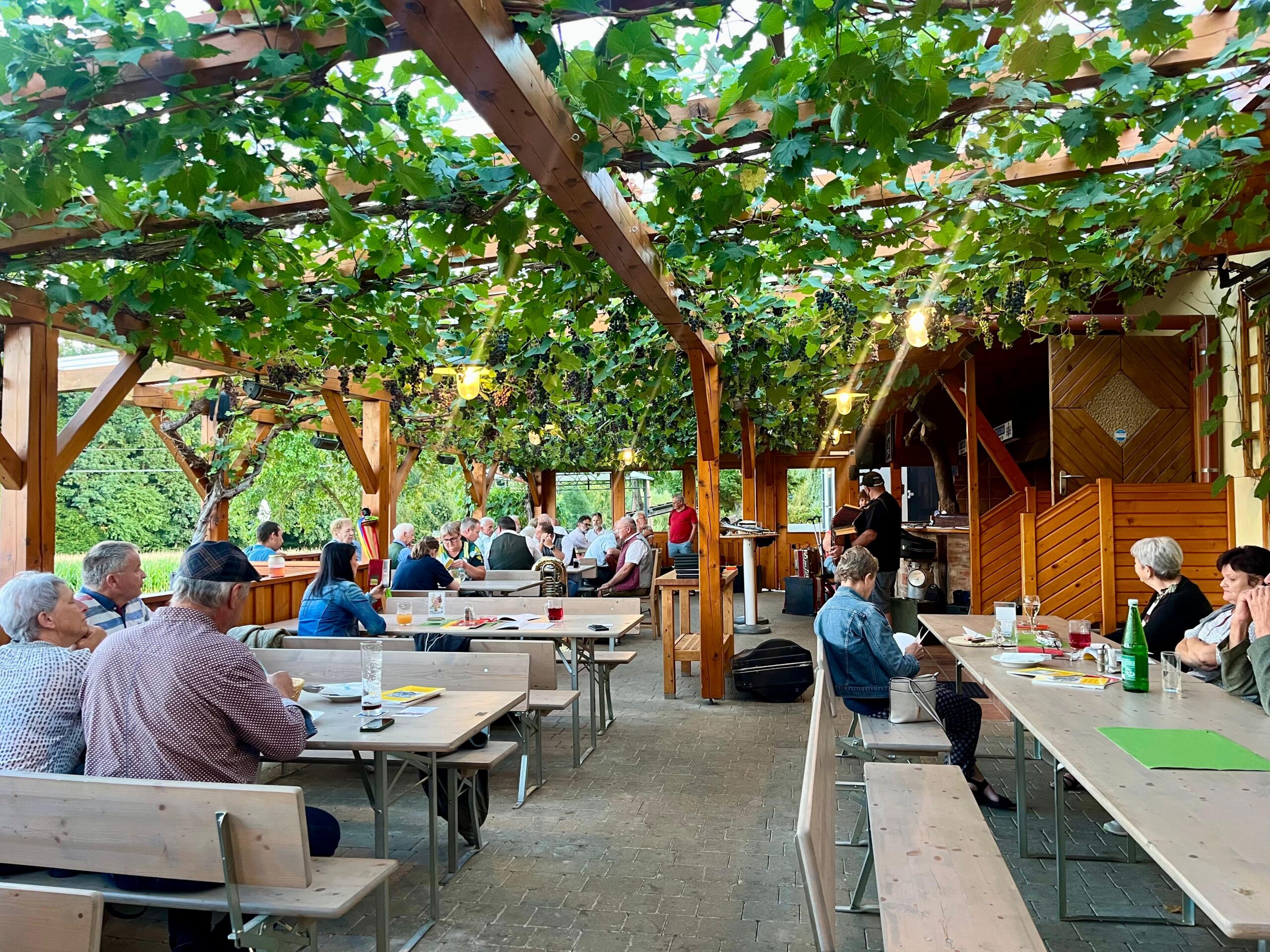 Am Montag, den 18.08.2025, fand beim Heurigenstadl Ehrenhöfer in Neustift an der Lafnitz wieder ein Sänger- und Musikantenstatmmtisch statt. Der Gastgarten war bestens besucht, zahlreiche Gäste und viele aktive Musikant:innen sorgten für beste Stimmung.