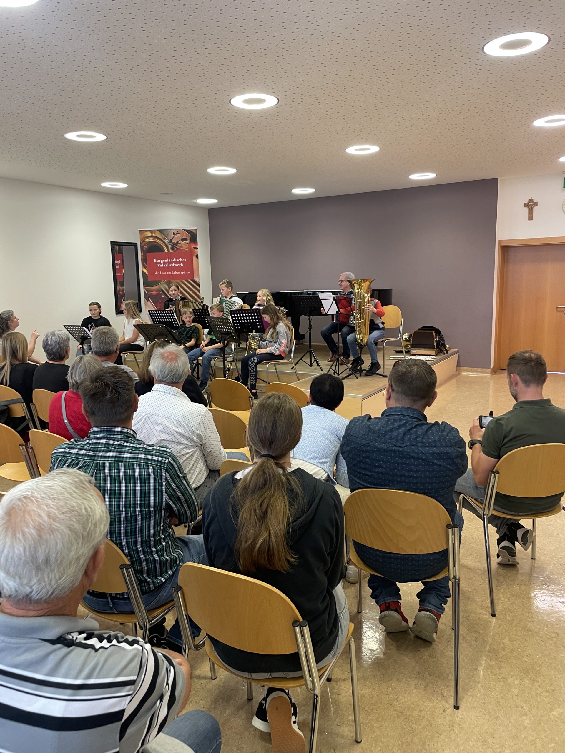Der Musikantentag bot den Teilnehmer:innen nicht nur die Möglichkeit zum intensiven Musizieren, sondern auch zum Austausch untereinander. Anwesend waren Musikschüler:innen der Musikschule Jennersdorf, der Musikschule Großpetersdorf und der Musikschule Güssing. Das Team des Burgenländischen Volksliedwerks sorgte für die Verpflegung vor Ort.