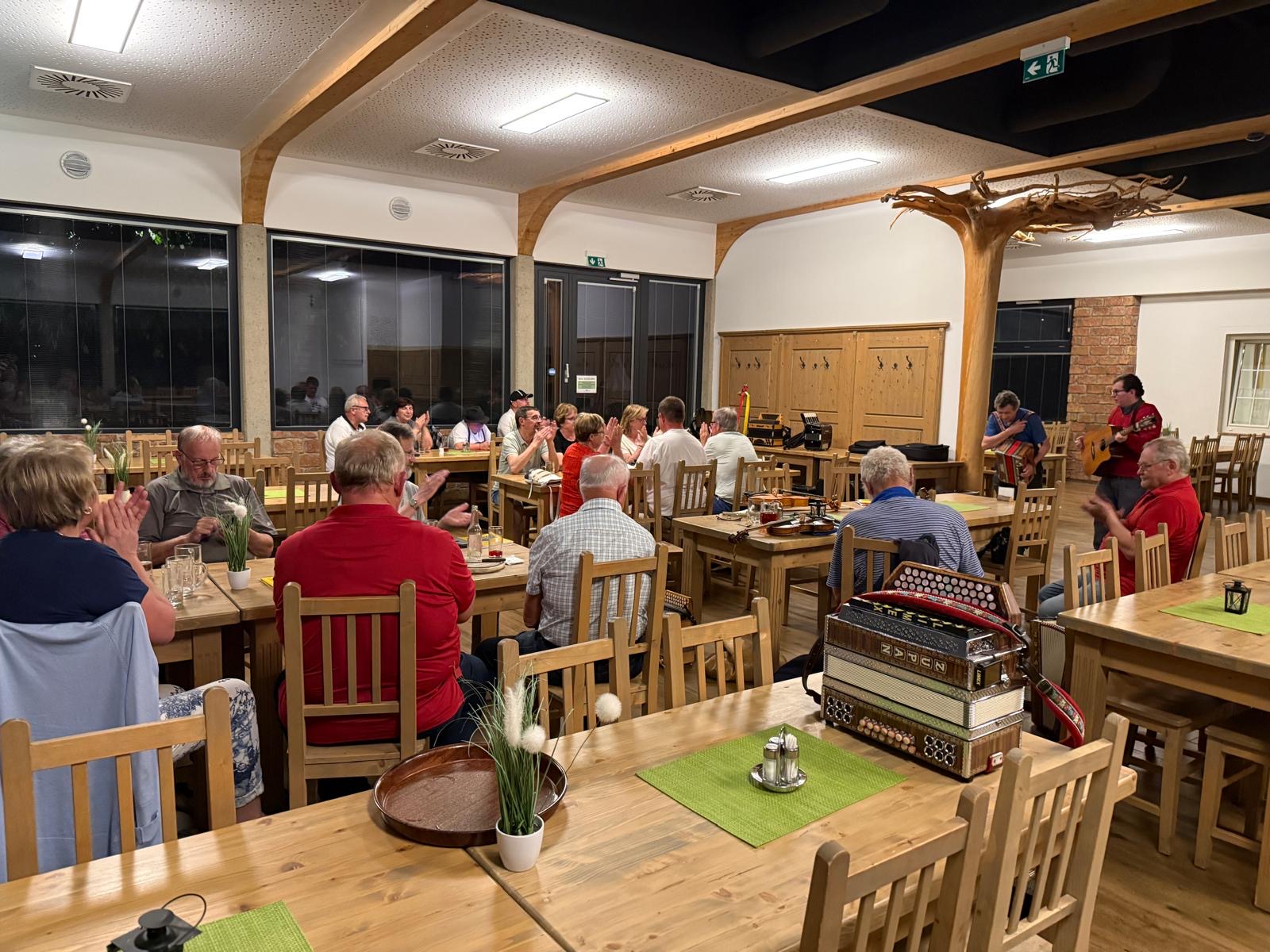 Wie gewohnt wurde musiziert, gesungen und getanzt. Der Stammtisch bot wieder die Möglichkeit zum spontanen Zusammenspiel, wodurch sich im Laufe des Abends vielfältige musikalische Begegnungen ergaben.