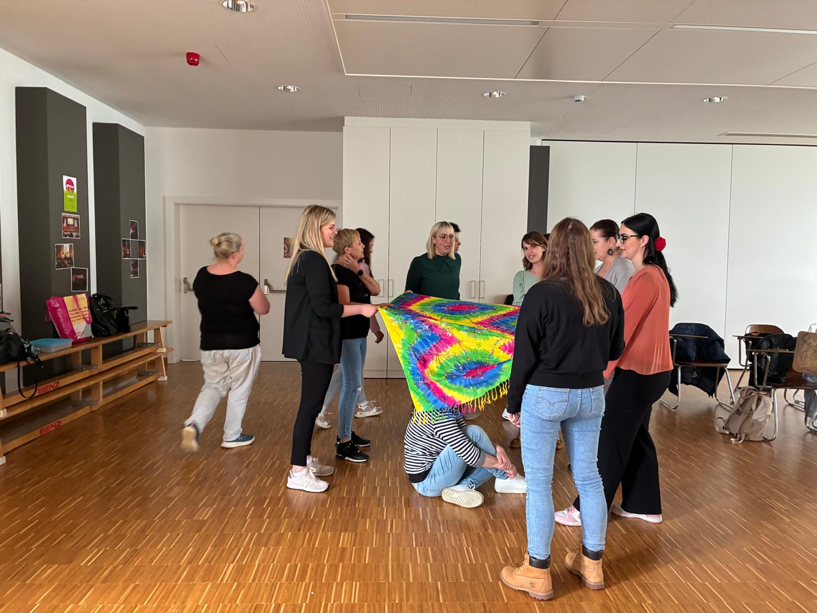 Es freut uns sehr, dass das Projekt „Mit allen Sinnen“ in diesem Jahr erstmals auch für das Kolleg der BAfEP Oberwart angeboten werden konnte. Unter der fachkundigen Leitung unserer Referentin Dagmar Schönfeldinger erarbeiteten rund 26 Schülerinnen burgenländische Lieder und Singtänze. Besonders im Fokus stand dabei, wie die musikalisch-pädagogischen Inhalte altersgerecht und differenziert im elementarpädagogischen Alltag eingesetzt werden können.