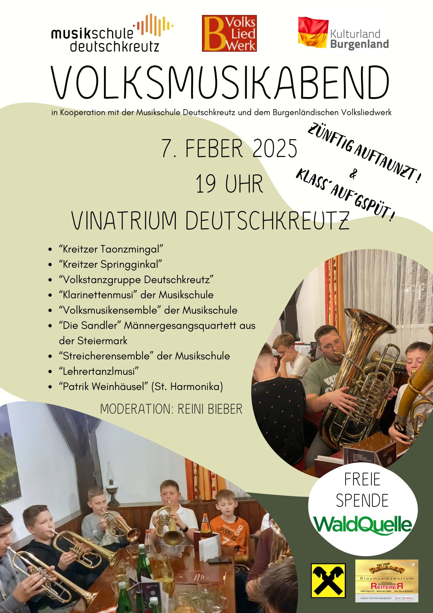 Herzliche Einladung zum Volksmusikabend in Kooperation mit der Musikschule Deutschkreutz und dem BVLW.